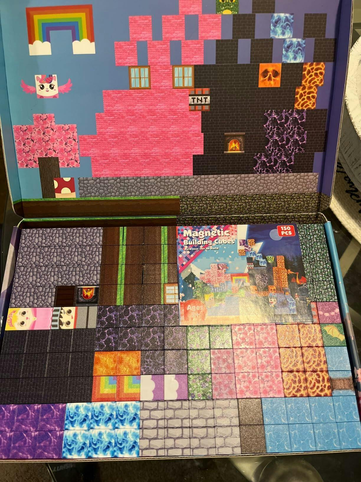 My 8 year old granddaughter loved playing with these and asked if we could get more. At first she built free standing pieces on top of an old metalic trunk we use for a coffee table. When I said it was time to put them away, she discovered how cool they look in the box - using the background on the lid and the printed image on the bottom of the box, she make a "castle room" and I was informed that I should not move any of the pieces since she wants to continue to play with them the next time she's here. (fortunately since they were in the box, it was easy to move to another area where it now awaits her return).