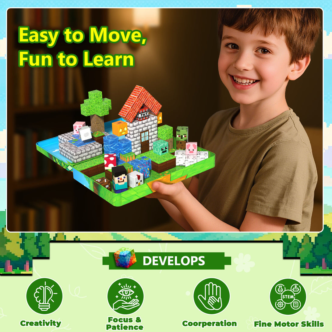 Safe, strong & mess-free — our magnetic blocks lock tightly, won’t fall apart, and are made with non-toxic materials.