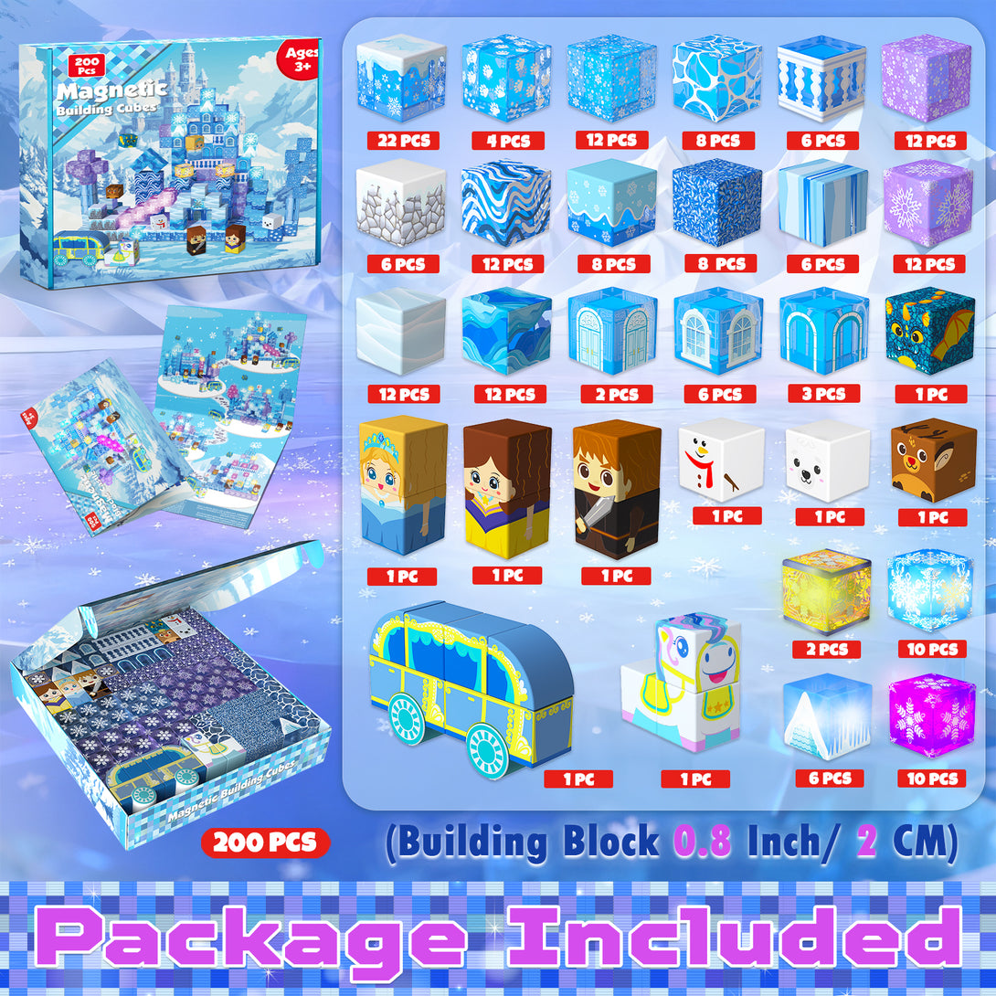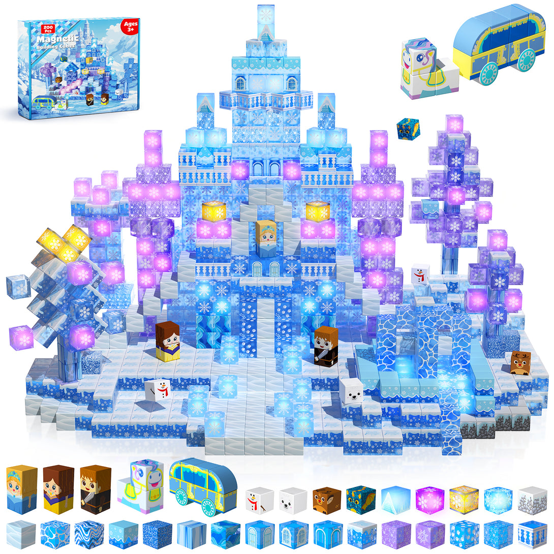 【Snow Valley】Magnetic Tiles Building Blocks STEM Toys | 2025 Glowing Collection | 200 PCS | 0.8"